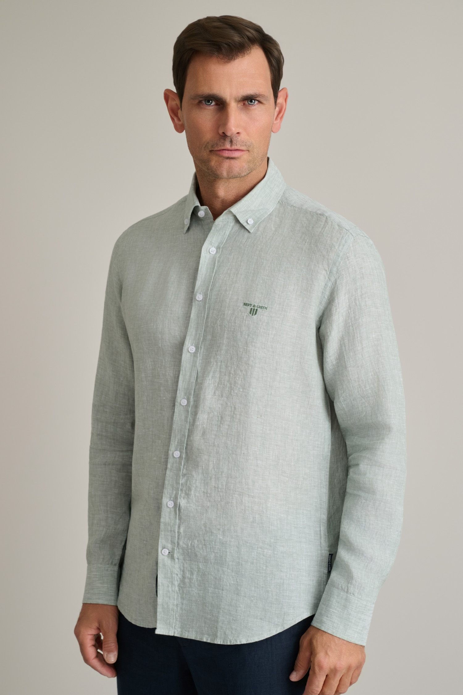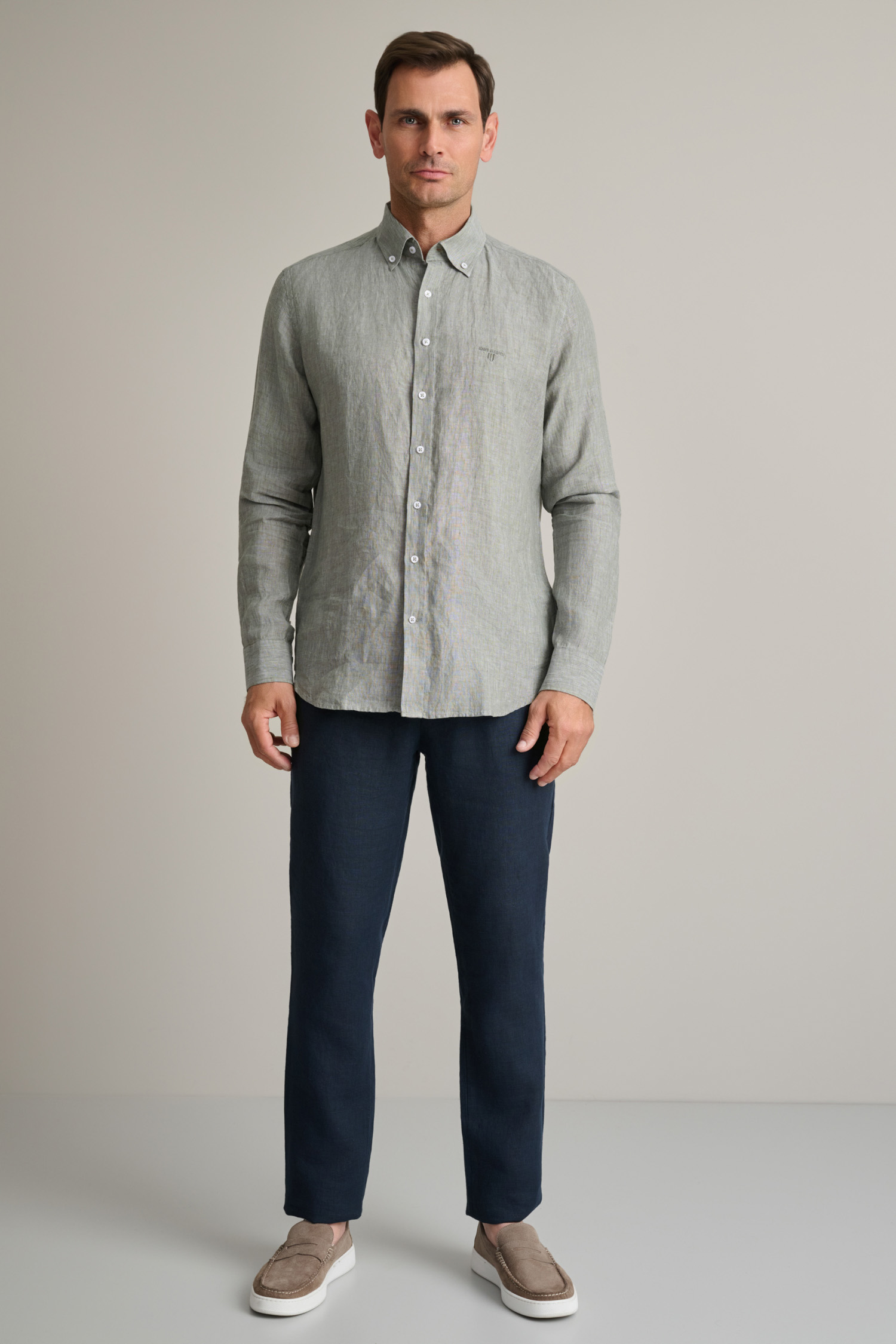 • Φυσικό Linen ύφασμα που προσφέρει δροσερή αίσθηση και ελαφριά υφή, ιδανικό για κομψές καλοκαιρινές smart casual εμφανίσεις