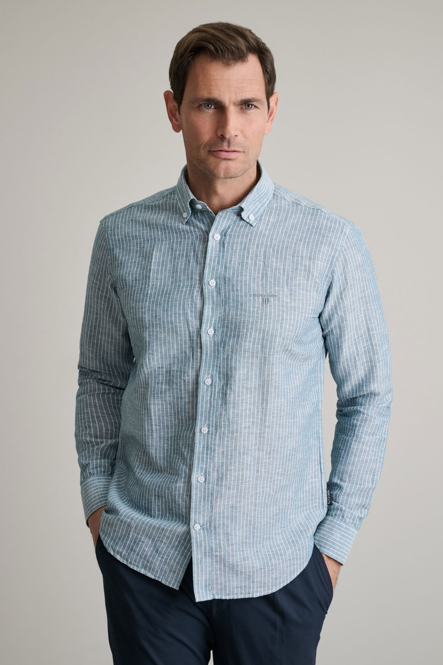 • Μείγμα Linen και Cotton που προσφέρει φυσική δροσερή αίσθηση και ελαφριά υφή, δημιουργώντας κομψό καλοκαιρινό χαρακτήρα για σύγχρονες smart casual εμφανίσεις